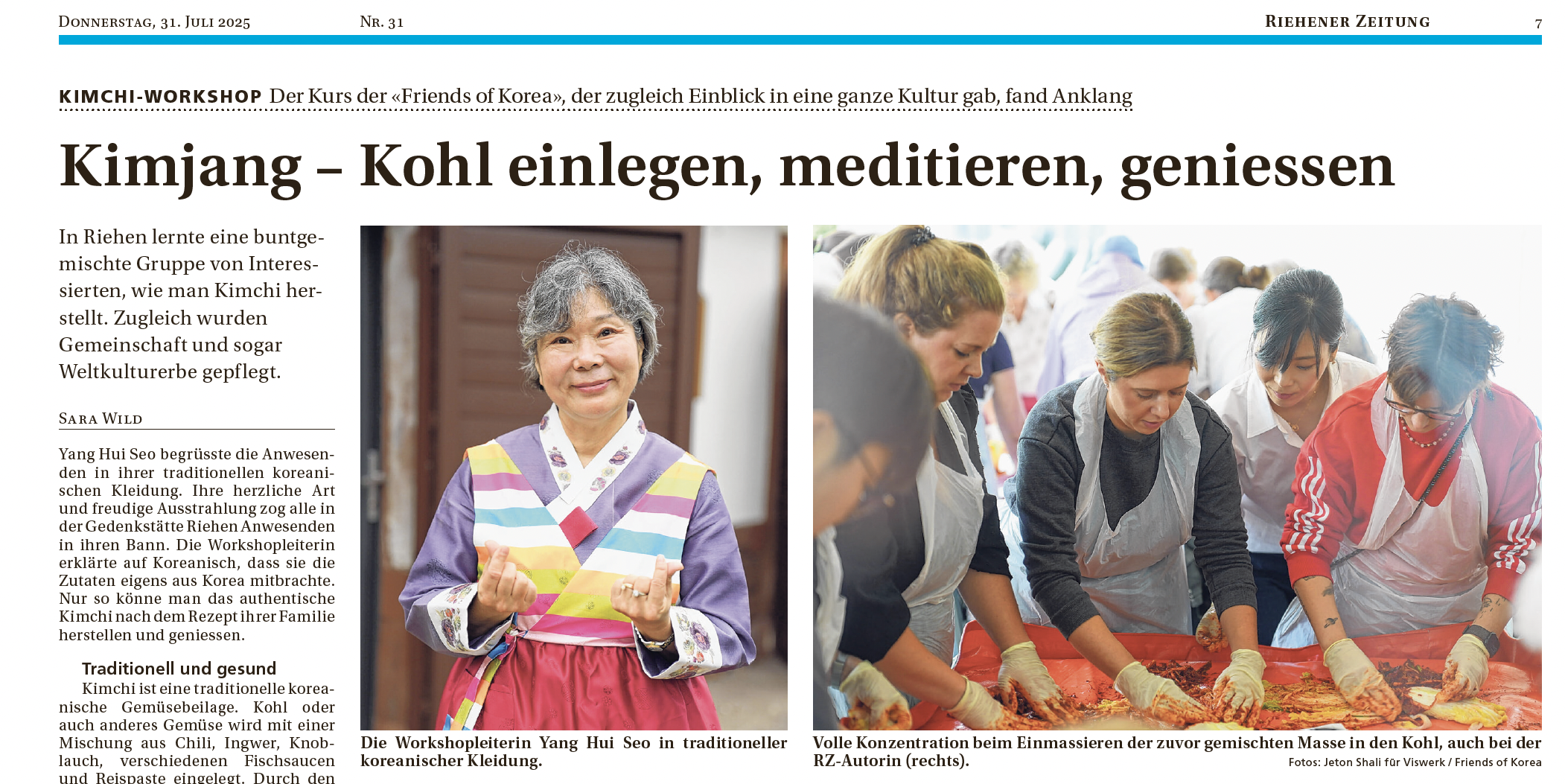 We’re thrilled to share that our Kimchi Workshop in Riehen has been featured in the Riehener Zeitung under the headline: “Kimchi ist mehr als ein…