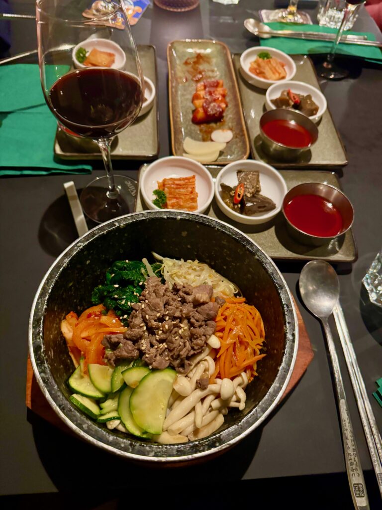 Akaraka served Korean dishes in small, throughtful courses, which naturally slowed down the evening and gave space for real conversation. Bowls of Janchiguksu, plates of Pajeon, and tteokbokki were passed down the table quickly. Hot Stone Bibimbap, seasonal banchan were a highlight, followed by a light ice cream dessert.